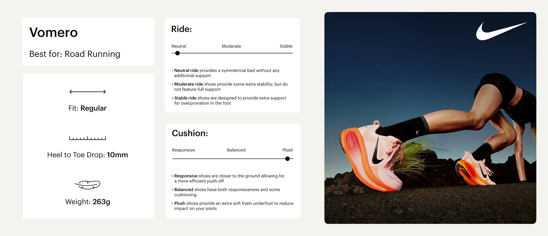 Experience next-level cushioning when you run in the Nike Vomero 18. Designed with a ZoomX and ReactX foam duo for comfort on all fronts and terrains. Designed for effortless transitions and plush comfort, mile after mile. Go further, faster, all while feeling the difference in your stride.
