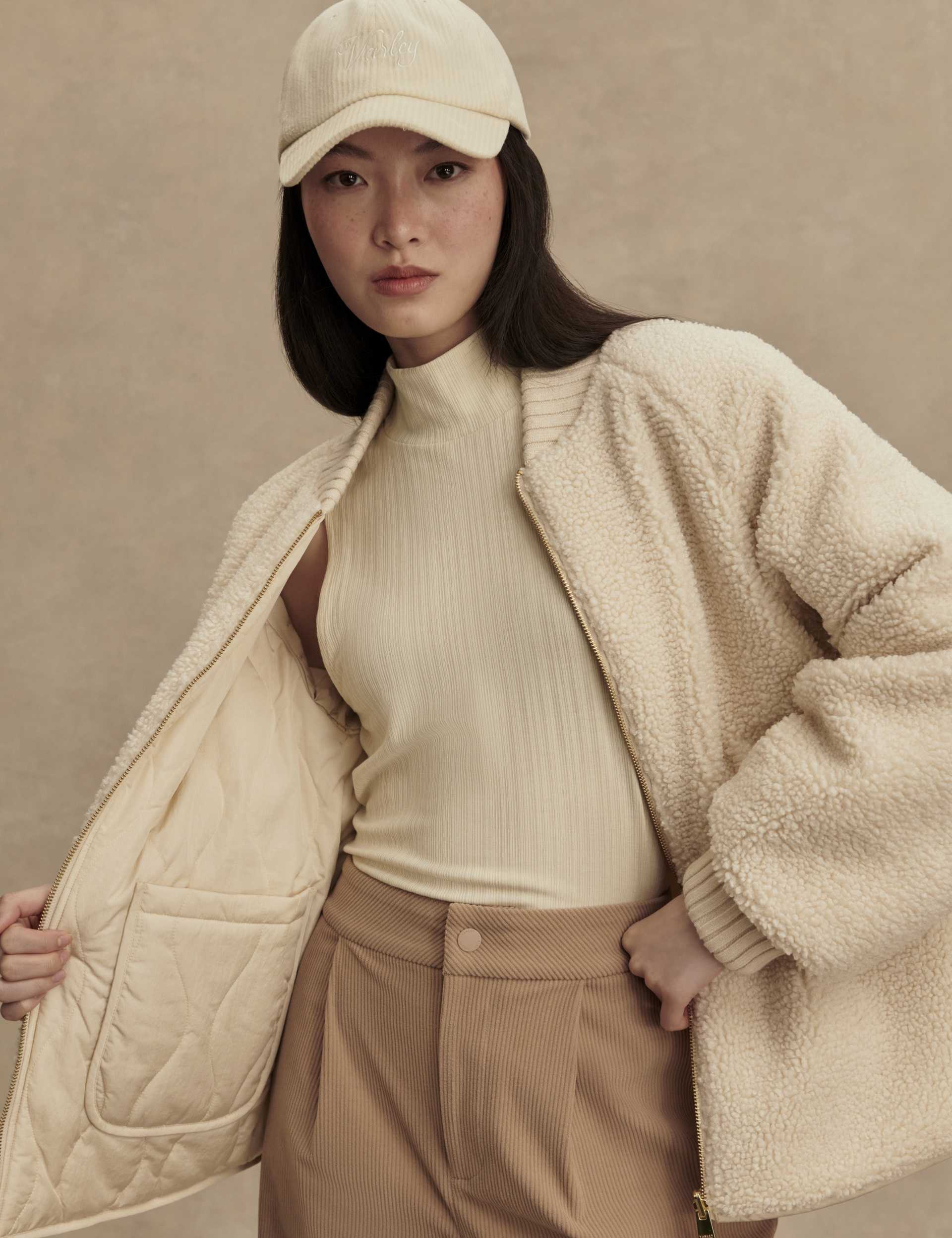 • Bouclé Sherpa and quilted shell fabrics